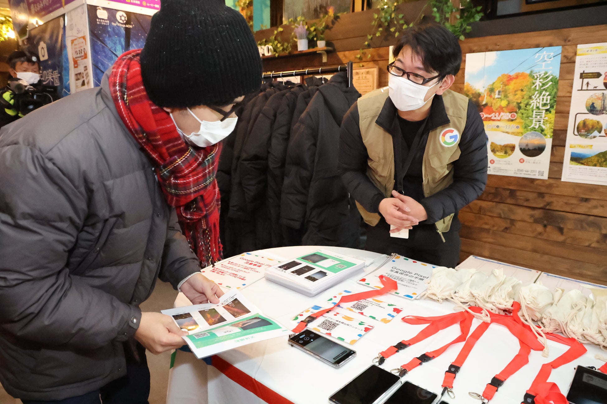 ロープウェイを降りてすぐのロッヂにて「Google Pixel」・防寒着・三脚のセットを無料レンタル中(先着100組限定)