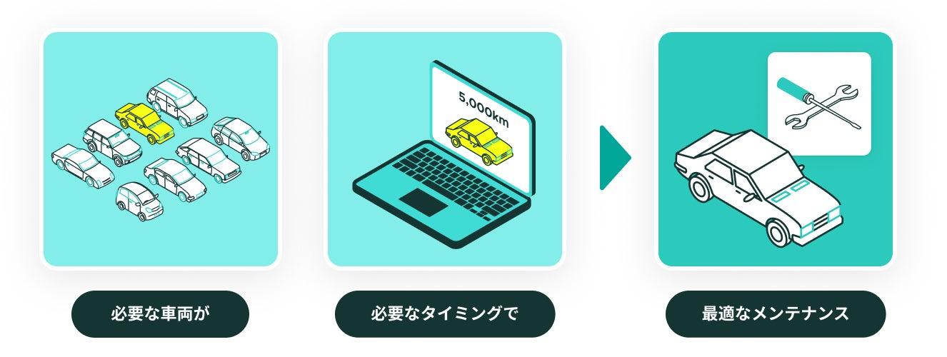 また、ご利用になる車両に関しても、適切なタイミングで点検を受けられることにより事故リスクを抑え、整備に要する時間を最低限にすることによる車両稼働率の向上を図れます。車両の利用状況に合わせた個別最適のメンテナンス以外にも、交通事故削減や減車に繋げるコンテンツも実装予定です。