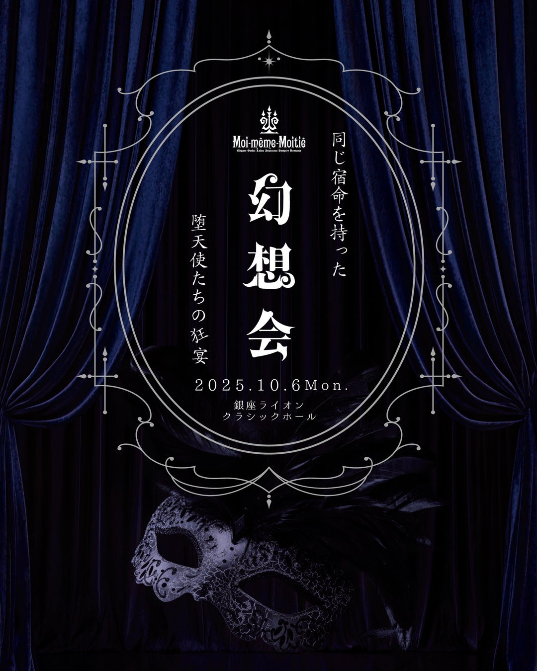 音楽、ダンス、ファッションが交錯するこの場所は、現実と幻想の狭間に佇む異界的空間となる事でしょう。長きにわたりMoi-même-Moitiéを愛してくださる皆様、そしてこれからこの世界へ足を踏み入れる方々へ――― この1日限りの饗宴が、貴方にとって忘れることの出来ない特別な体験となることを願ってやみません。同じ宿命を背負う堕天使たちが集う"幻想"の世界。