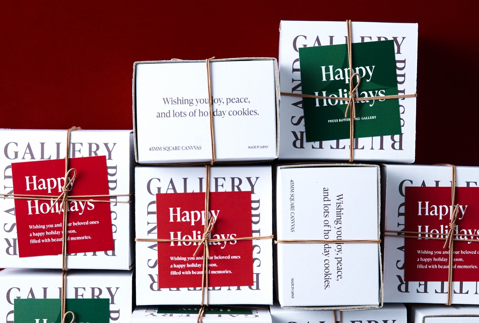 プレスバターサンドギャラリーは、感性を刺激するお菓子を生み出すための実験・実践の場です。バターサンドの象徴的な形状である 45mm×45mm の正方形をキャンバスに見立て、その中で出来うる限りの表現に挑戦し、プレスバターサンドの新たな領域を探ります。ダイナミック、ユーモア、独創的。それぞれのバターサンドが持つ個性は違えど、通底しているのは自由な精神と、それを下支えする製菓の技術。