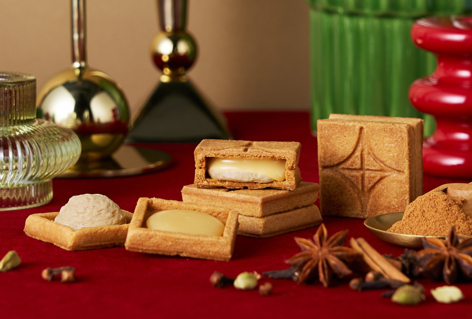 シナモン、クローブ、カルダモンなど6種類のスパイスをミックスしたバタークリームと口どけなめらかなバターキャラメルをサクサクのクッキーでサンドした、スペキュロス風味のバターサンドです。暖かさを感じるような甘さにスパイシーな香りが漂い、冬の訪れを感じていただける味わいです。