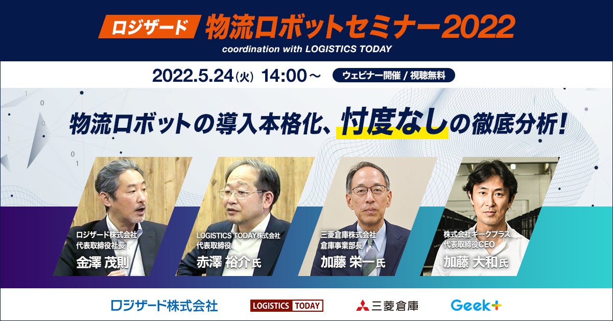 | イベントタイトル | ロジザード物流ロボットセミナー2022 coordination with LOGISTICS TODAY ~ 物流ロボットの導入本格化、忖度なしの徹底分析 ~ |