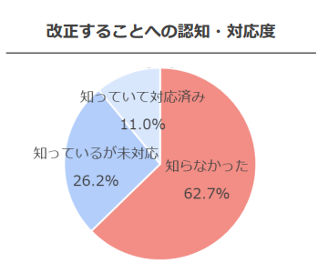 ・電帳法改正を「知らなかった」が62.7%、電帳法改正に「対応している」はわずか11.0%