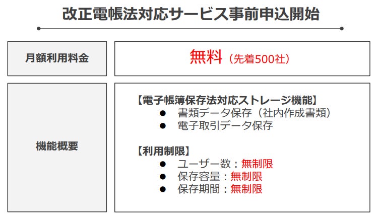 この提供準備に合わせ、先着500社まで月額料金無料でご提供する事前申し込みを受け付けています。