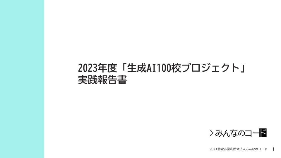 みんなのコード、2023年度「生成AI100校プロジェクト」実践報告を公開