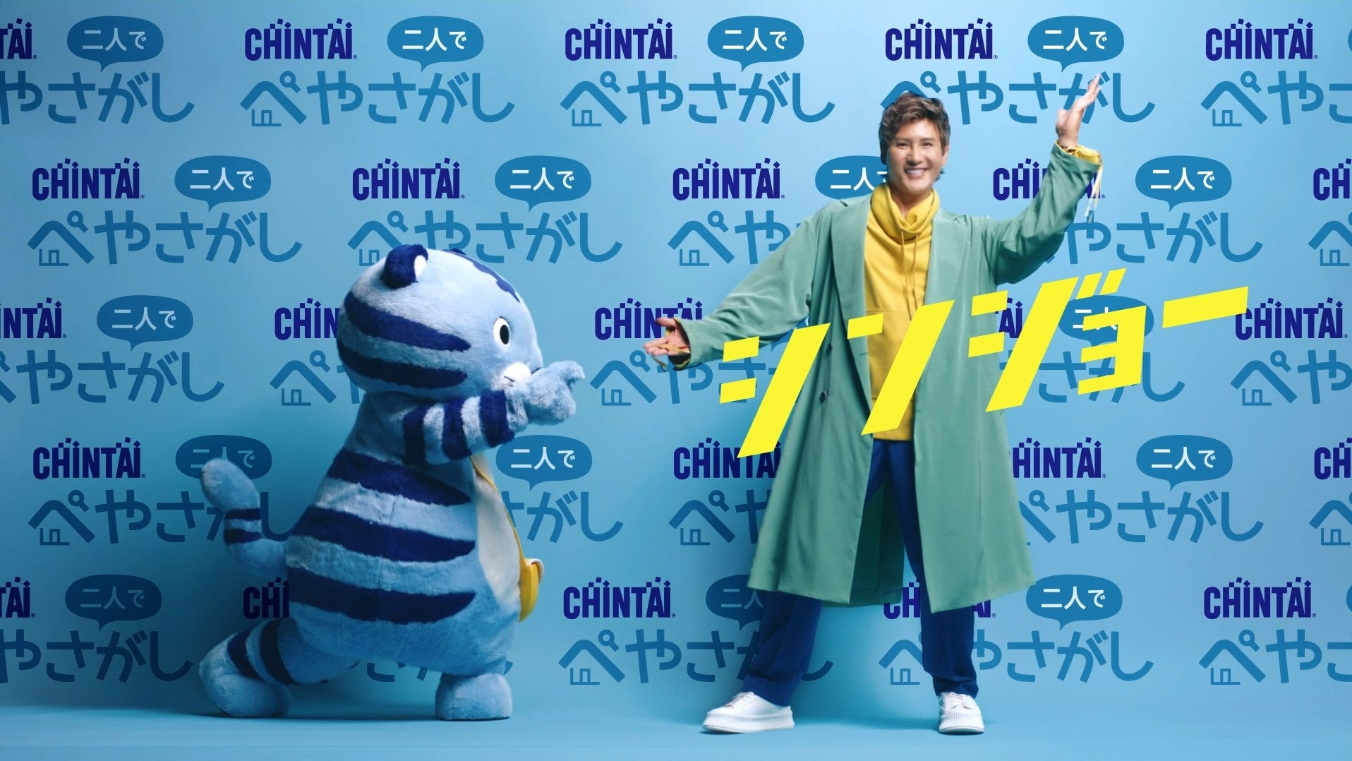 今回のCHINTAI新CMでは、前回に引き続き新庄剛志さんをイメージキャラクターとして起用しています。CHINTAIの多様なお部屋探しサービスのイメージカラーを基に新庄剛志さんが色鮮やかな衣装を着用し、CHINTAIマスコットキャラクターのチンタイガーと一緒にカッコ良いポーズを決めています。