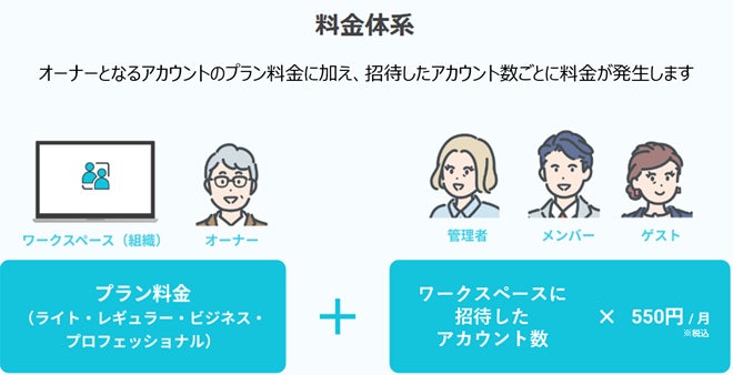 オーナーとなるアカウントのプラン料金に加えて、招待したアカウント数に応じて料金が発生します。