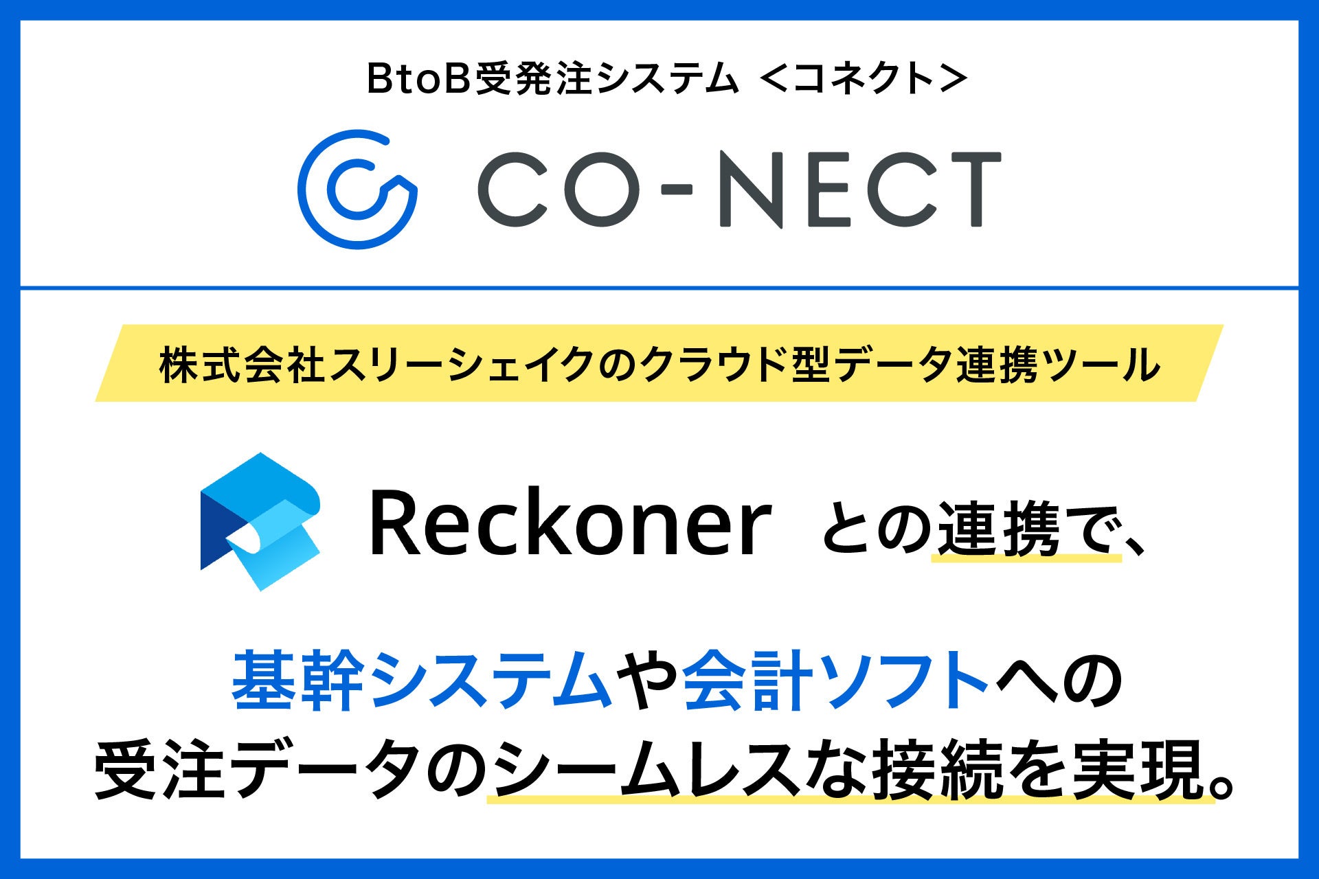 BtoB受発注システム「CO-NECT(コネクト)」およびBtoB受注業務アウトソーシング「CO-NECTクロート」を運営するCO-NECT株式会社(本社:東京都千代⽥区、代表取締役:⽥⼝雄介)は、株式会社スリーシェイク(本社:東京都新宿区、代表取締役社長:吉田拓真)が提供する、クラウド型データ連携ツール「Reckoner(レコナー)」と連携し、CO-NECTの受注データを基幹システムや会計ソフトへシームレスに接続可能になりました。