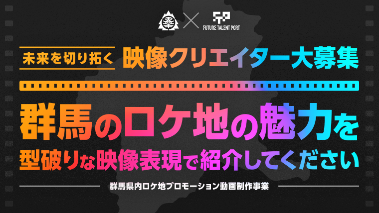 テレビや動画配信サービス、SNSなど、映像コンテンツが様々なメディアで発信されている昨今、若い映像クリエイターたちはそれぞれの視点や感性と最先端の技術や手法を掛け合わせて個性豊かな映像作品を生みだしています。彼らの熱量や型破りな映像表現を活かしてプロモーション動画を制作いただくことで、群馬県内のロケ地の新たな魅力を引き出し、発信していきます。