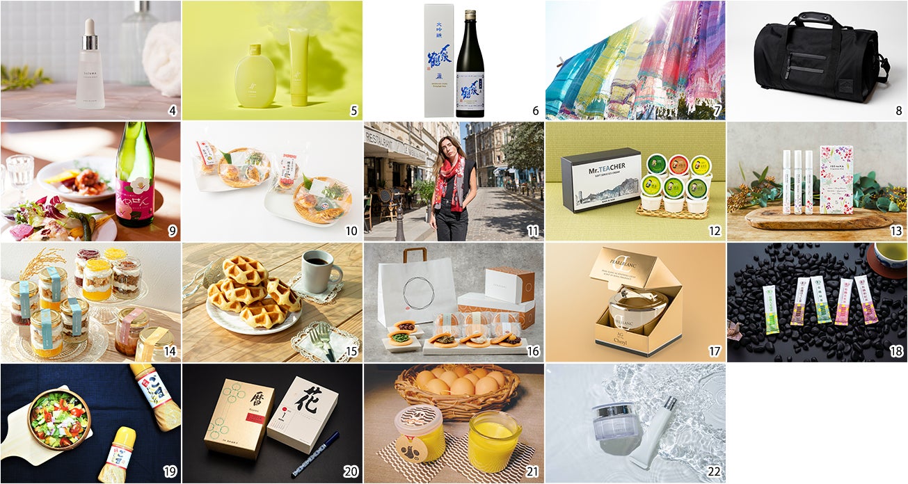全受賞対象のうち特に評価の高かった対象に贈られる「最高金賞」に選ばれたのは、株式会社丸モ高木陶器の「日本旅和膳シリーズ」、株式会社シンギの「時空食堂 冷凍駅弁おにぎり」、アイディーテンジャパン株式会社の「KURA ONE 小容量アルミ缶日本酒」の3対象となりました。「地域創生賞」には、地域に伝わる伝統的な調味料をブラッシュアップした、ほうとう研究所(株式会社クリエイティブリゾート)の「ほうとう研究所 すりだね」が選出されました。「サステナブル賞」には、環境保全と安全性への取り組みが光る、株式会社ミネラリストの「bambina竹炭ミネラル洗濯洗剤」、住友商事株式会社が提供するインバウンド向け衣料シェアリングサービス「Any Wear, Anywhere」が選出されました。