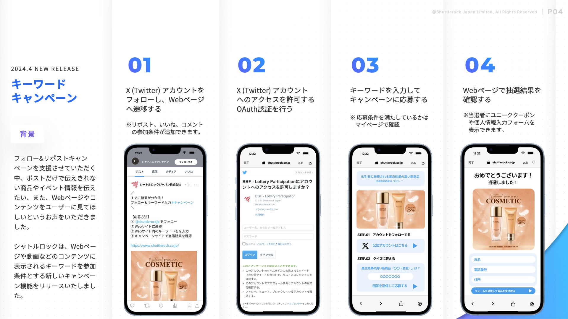 シャトルロックジャパン株式会社(本社:東京都新宿区、代表取締役:金光 展意、以下、シャトルロックジャパン)は、X (Twitter)で商品やサービスの理解促進につながるキャンペーンの実施が可能になる機能をリリースしたことをお知らせします。