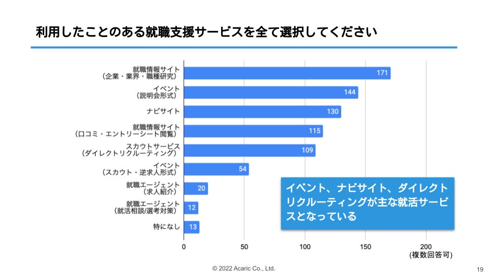 - イベント、ナビサイト、ダイレクトリクルーティングを主に利用