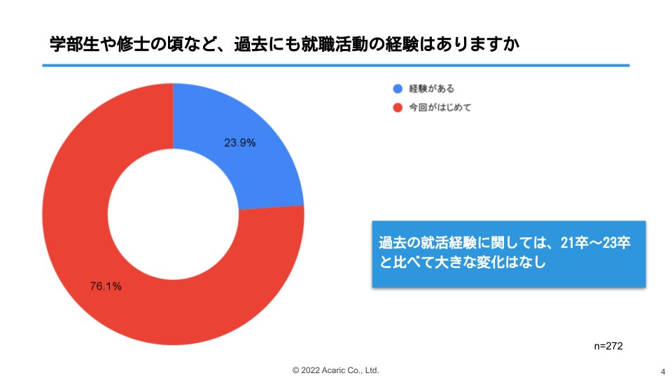 - 過去の就活経験に関しては、21卒~23卒と比べて大きな変化はなし