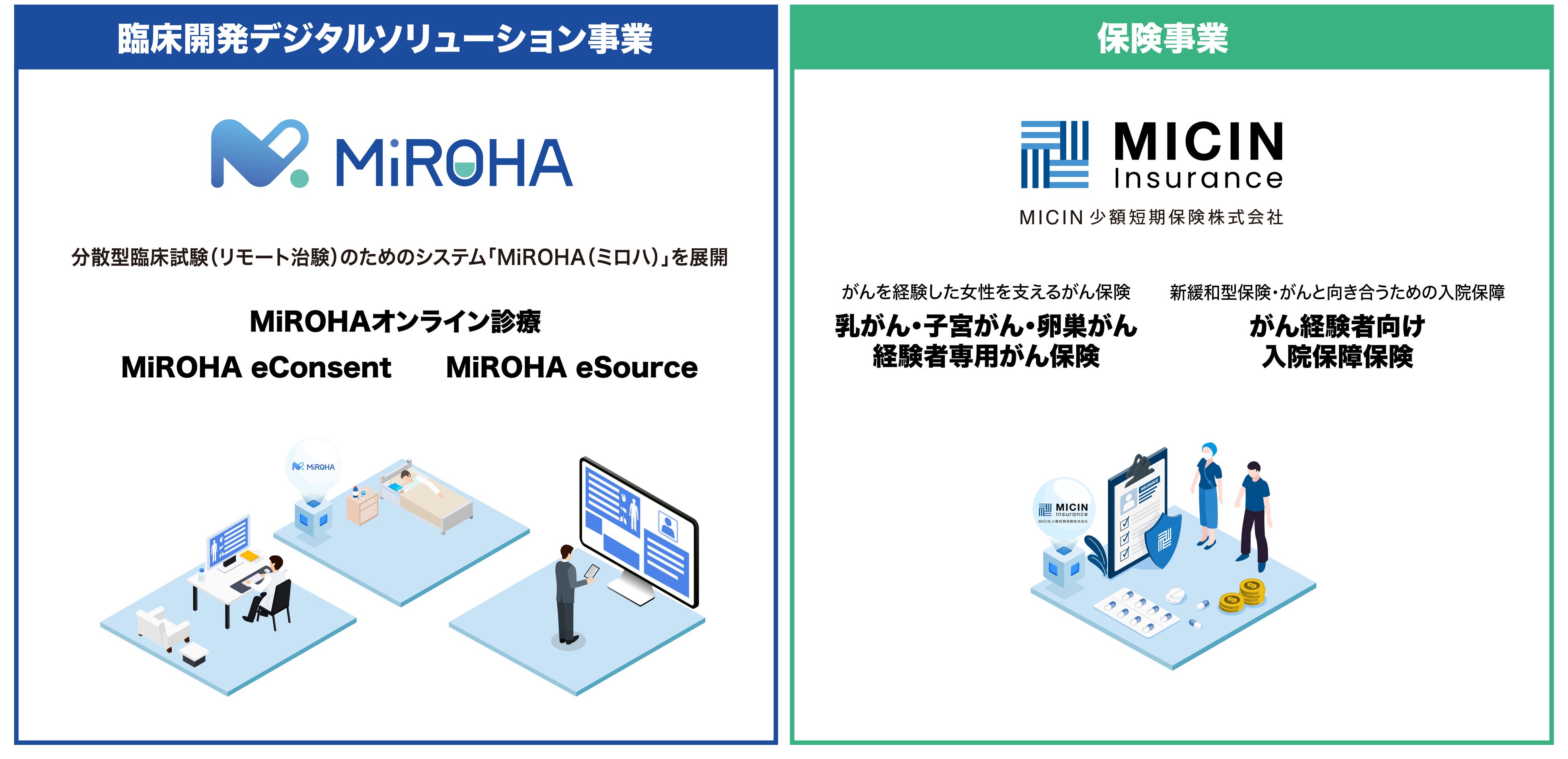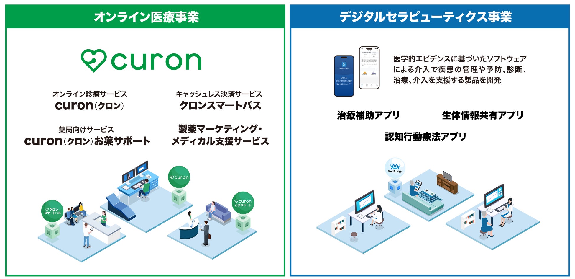 事業内容:オンライン医療事業、臨床開発デジタルソリューション事業、デジタルセラピューティクス事業、保険事業 等