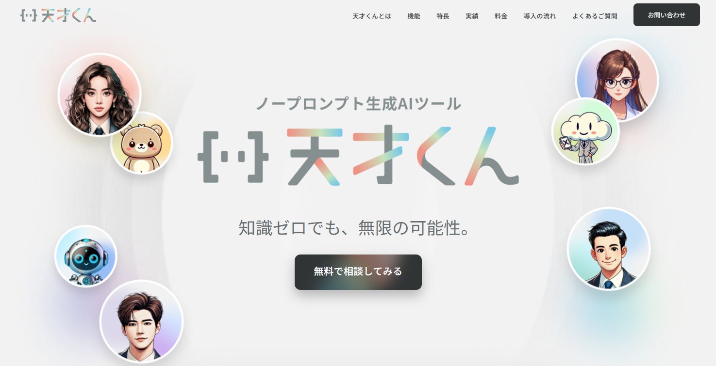 「天才くん」は、AIツールを利用する企業や部門、ユーザーごとの業務の目的やプロセスとの親和性、効果性向上を目指し、ユーザー自身が必要なテンプレートや機能を量産・カスタマイズできるノープロンプト生成AIツールです。「豊富な機能や高い性能を特長とするAIツールが使いこなせない」というユーザーの声を受け、AIやプロンプトへの理解度や利用経験にかかわらず、ユーザーが直感的に使いやすいインターフェースにこだわりました。さらに、日常的な業務へのツール活用の定着促進を図り、部署全体の業務の質と生産性の向上を後押しする新しい発想のもと設計、開発しています。