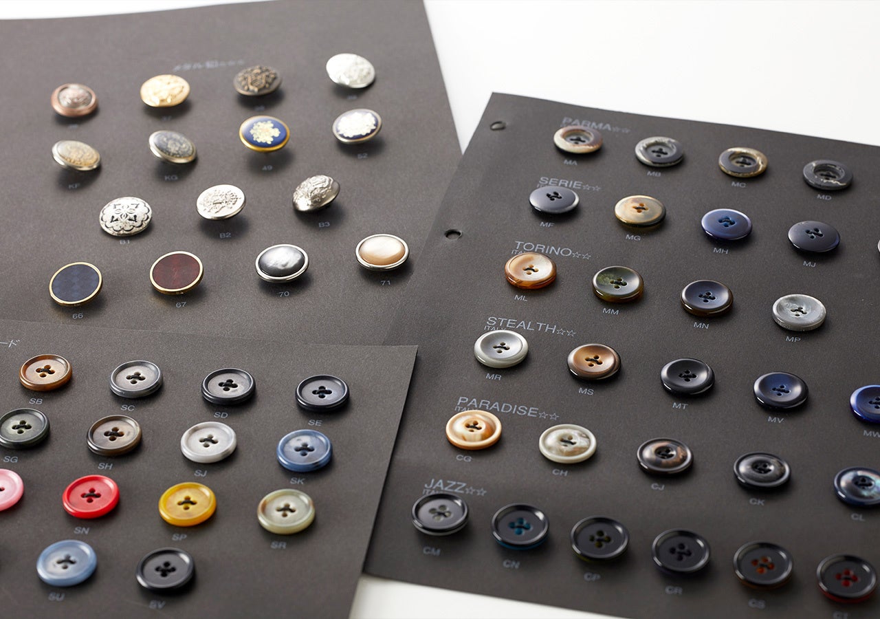 本水牛ボタンや革ボタンなどの、高級素材でカスタマイズをお楽しみください。