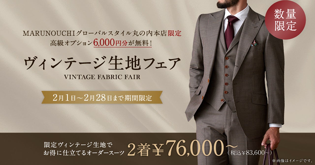 【MARUNOUCHIグローバルスタイル本店限定】2月1日~2月28日まで豪華特典付きお得なヴィンテージ生地フェアを開催!ワンランク上の高級オプションをお楽しみください。
