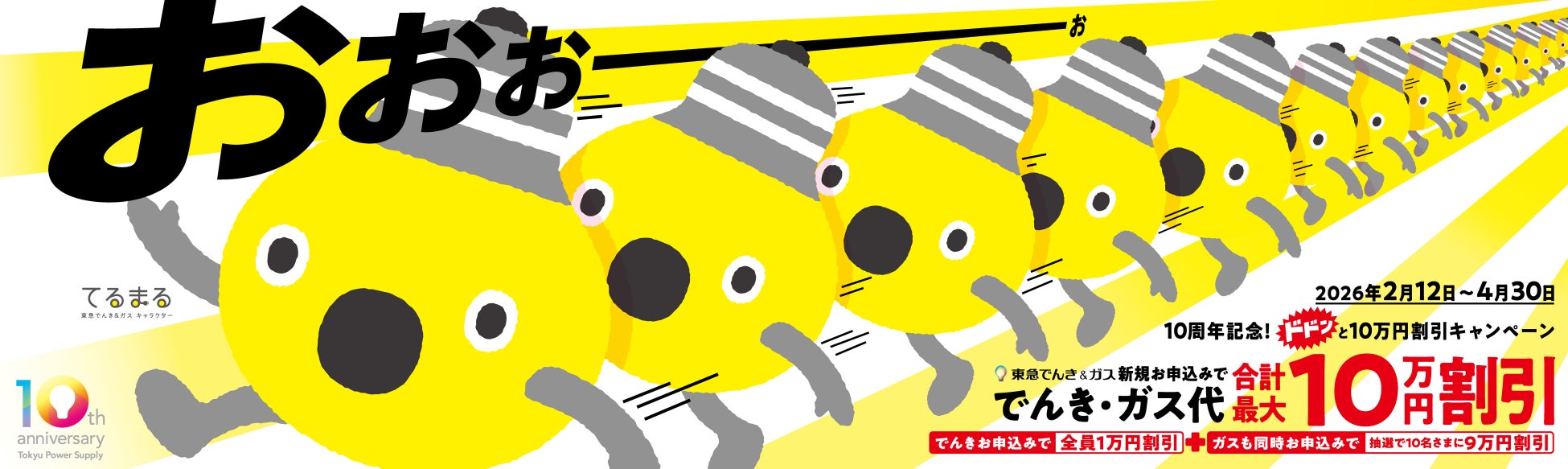 株式会社東急パワーサプライ(本社:東京都世田谷区、代表取締役社長:村井 健二、以下、東急パワーサプライ)は、東急でんき&ガスへのお申込みで、でんき・ガス代を最大10万円分割引する『10周年記念!ドドンと10万円割引キャンペーン』(以下、本キャンペーン)を2026年2月12日(木)から開始いたします。