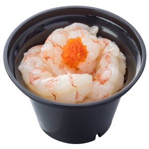 天然物のプリップリのえびをミニ丼に仕上げました。