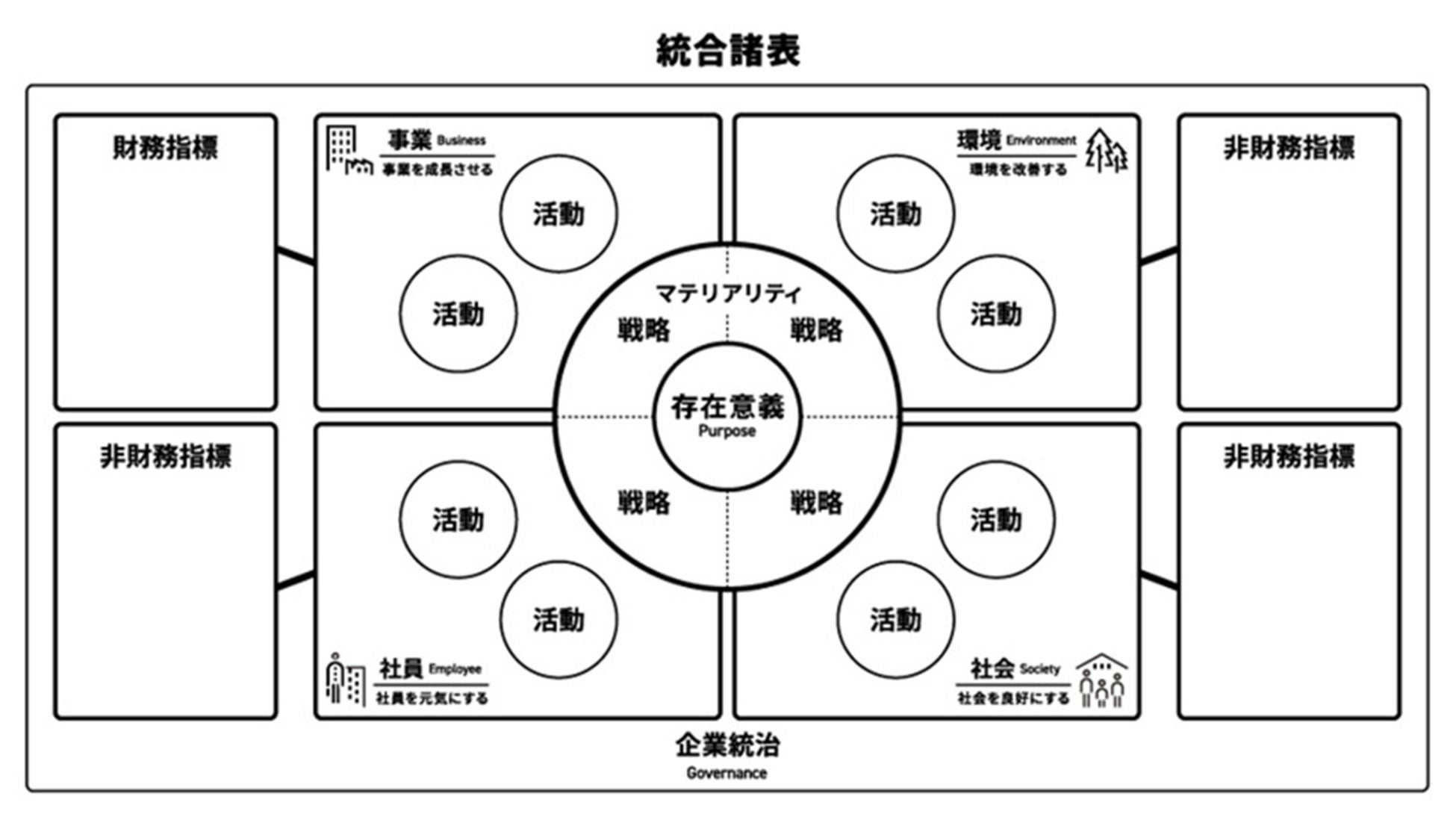 (※1) 「統合諸表」は、企業価値を「事業」「社員」「社会」「環境」の4象限で捉え、財務情報だけでなく非財務情報も含め、統合的な視点で企業価値の可視化・再構築を可能にする株式会社電通が開発した新しいフレームワークです。