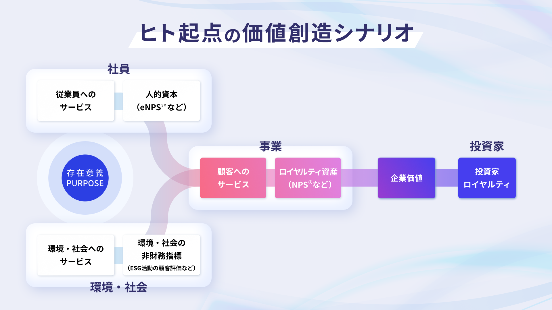 (※2) 「ヒト起点の価値創造シナリオ」は、サービスプロフィットチェーン理論を背景として、ステークホルダーロイヤルティの関係性を可視化し分析する企業価値向上のシナリオです。