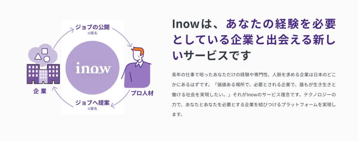 25 年以上のキャリアを重ねたベテラン⼈材が、これまで培ってきた専⾨性の⾼い知識やノウハウ、⼈脈等 の「経験」と、それらを活⽤したい企業や⼈の「ニーズ」をマッチングさせるジョブ型マッチングサービス。