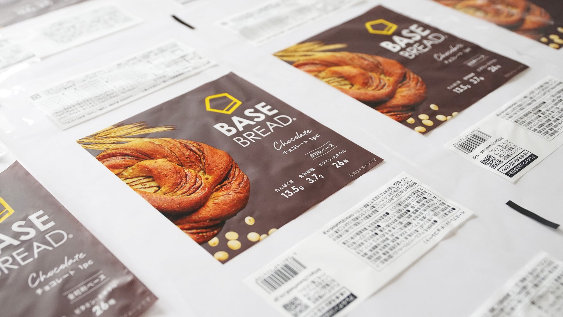 また、「BASE BREAD」シリーズの表面部には、フィルムの光沢素材とマット印刷の異なるテクスチャーを組み合わせたデザインを採用し、立体感を出すことで、見た目にインパクトを与えると共に、商品の持つ深みのある味わいを演出しています。