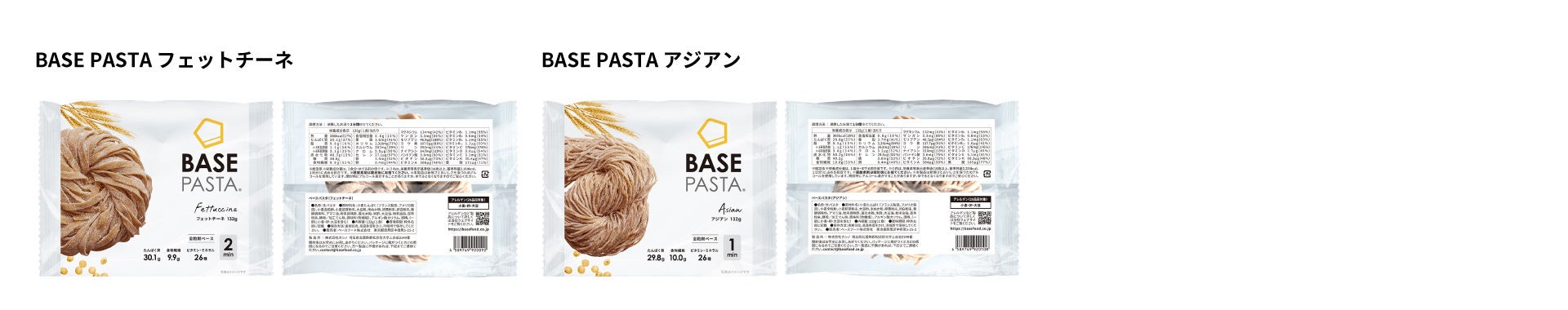 *1 1食分(BASE BREADは2袋、BASE PASTAは1袋、BASE Cookiesは4袋、BASE FOOD Deliは1袋)で、栄養素等表示基準値に基づき、脂質・飽和脂肪酸・炭水化物・ナトリウム以外のすべての栄養素で1日分の基準値の1/3以上を含む