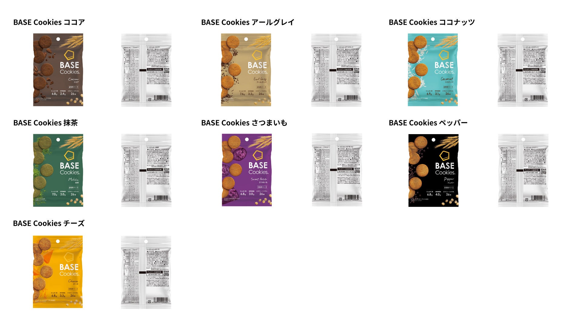 今回のデザインリニューアルでは、シリーズ全商品を対象に、それぞれの商品の中身をデザインとして見せることで、直感的に「食べてみたい」「おいしそう」と感じていただくと共に、BASE FOODらしさを保ちながらも、食品ブランドとしての「手軽感」であり「身近な存在」として親しみを持っていただけるよう変更しています。フレーバーの異なる各商品の形状や質感など、それぞれの商品の持つ特徴を最大限に活かし、より魅力的に見せるデザインにしています。