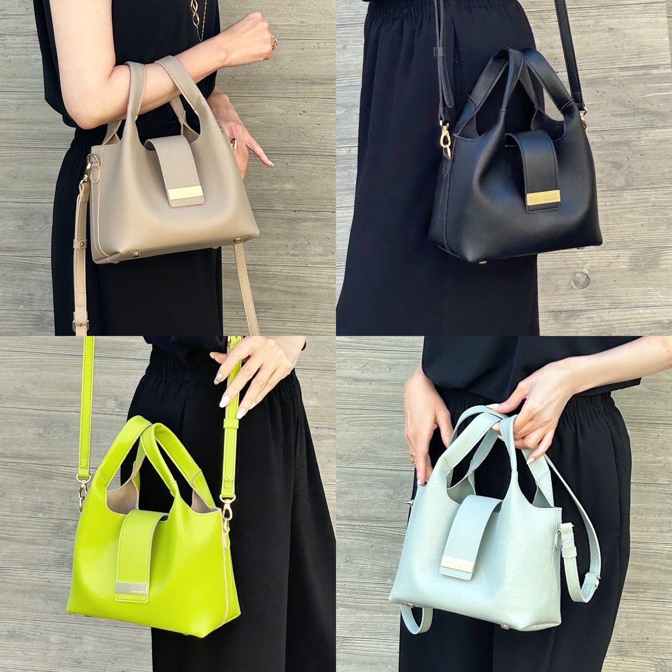 ボックストートバッグ「MARINA」は、海洋廃棄物から生まれた新開発の人工皮革を使用したカラー1色に加え、「竹」を原材料に使用したバンブーレザーを使用したカラー3色を展開します。