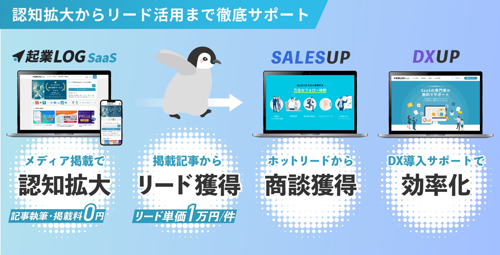 SalesUPは、DX導入支援を行う企業様に新規リードをご提供するサービスです。