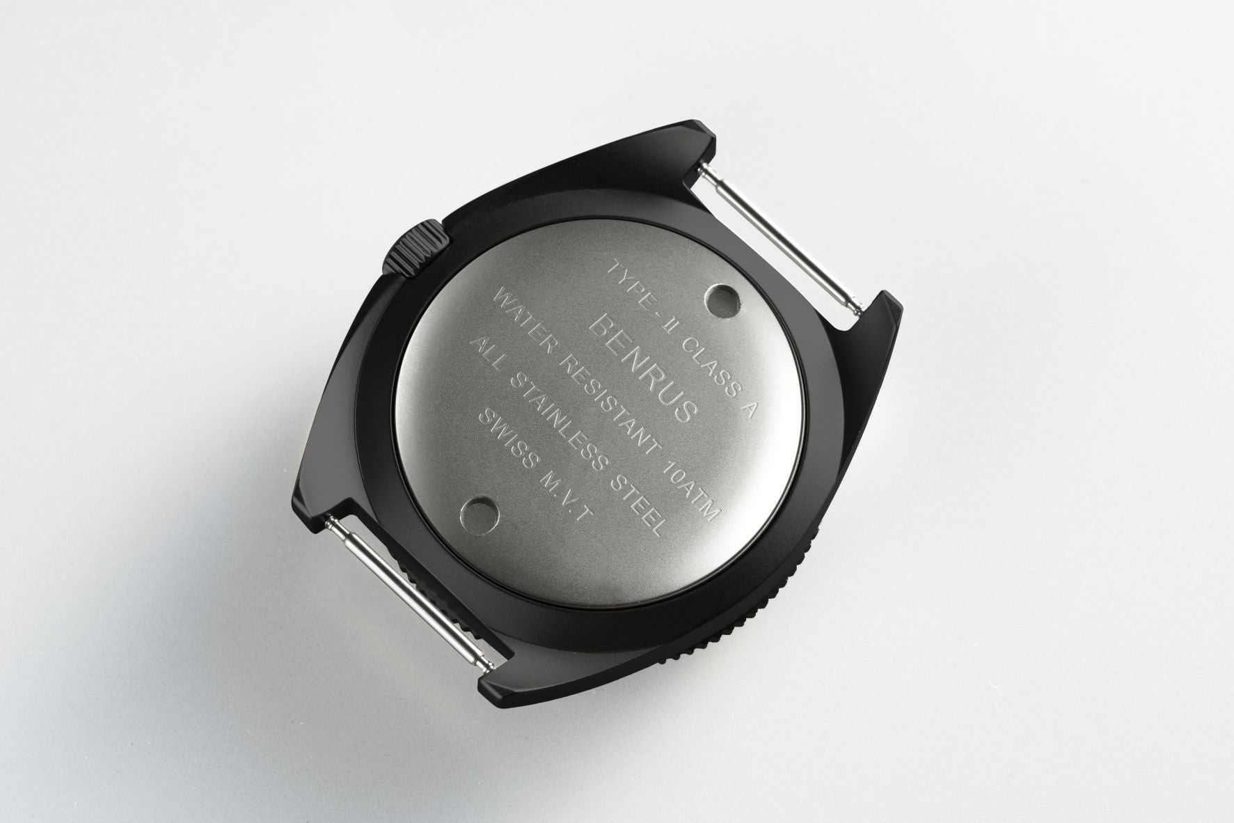 その後、米軍はベンラス社とMIL-W-50717の軍事契約を結び、特に秘密作戦のための新しいダイバーズウォッチの設計および製造を依頼しました。ベンラス社は米軍のニーズに応えてTYPE I, TYPE IIを設計し、1972年頃から1980年まで製造。TYPE I はベトナム戦争中、UDT(水中破壊工作部隊)、ネイビーシールズ、CIAエージェントおよび深海潜水や特殊部隊の現場の特殊工作員に提供できる非常に堅牢な時計となり、これまでに製造された中で最も優れた米軍のダイバーズウォッチの1つになったと言われています。タイプIIモデルは、タイプIと組み合わせて製造され、現場の兵士やオペレーターにより適した12/24時間のダイヤルを備えていました。一般に販売されることはありませんでした。ケースのデザインは、「モノコック」ケースを選択。裏ブタが無いデザインで、当時のほとんどの時計とは異なりました。ケース自体はすべて鋼ブロックから機械加工されていたのです。ムーブメントにアクセスする唯一の方法は、ドーム型のクリスタル、針、ダイヤルを外すことです。この設計により、時計の耐久性が大幅に向上したと言われています。