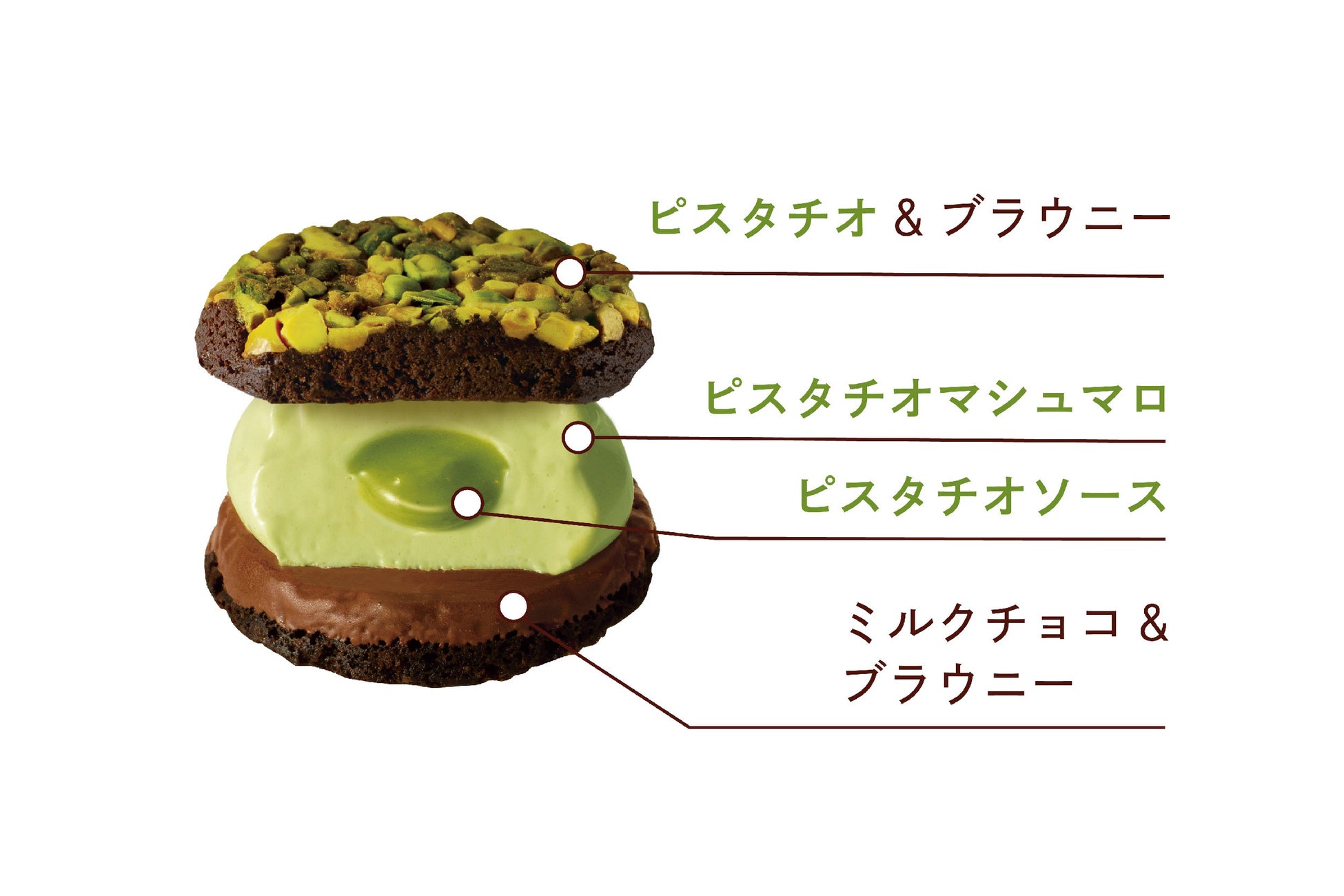 ピスタチオがぎっしり敷き詰められたチョコブラウニーをじっくりと焼き上げ、ふわふわのピスタチオマシュマロをサンドしました。マシュマロの中からはピスタチオソースが“とろり”ととろけ出します。通常は常設店でしか手に入らない“どこを食べてもピスタチオづくし”の特別な一品を、ファーストクラスでのご提供よりも一足早く堪能してみてはいかがですか?