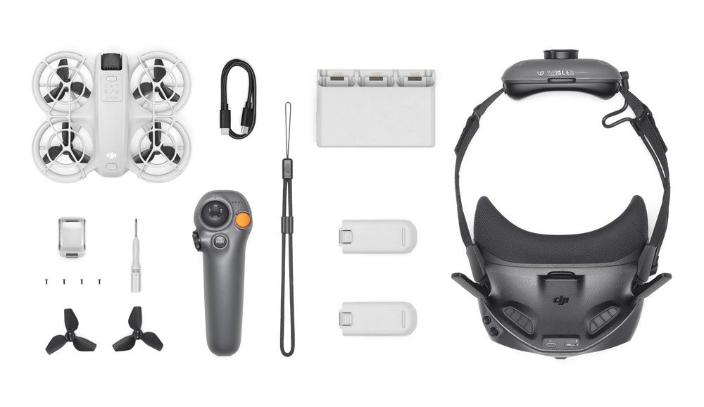 DJI Neo本体に加え、インテリジェント フライトバッテリーやFPVゴーグル「DJI Goggles N3」などがセットに。