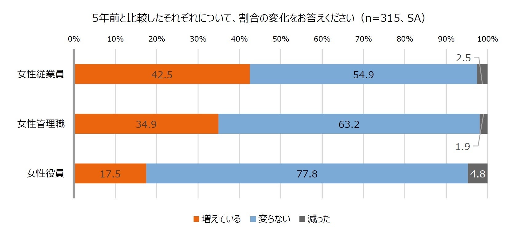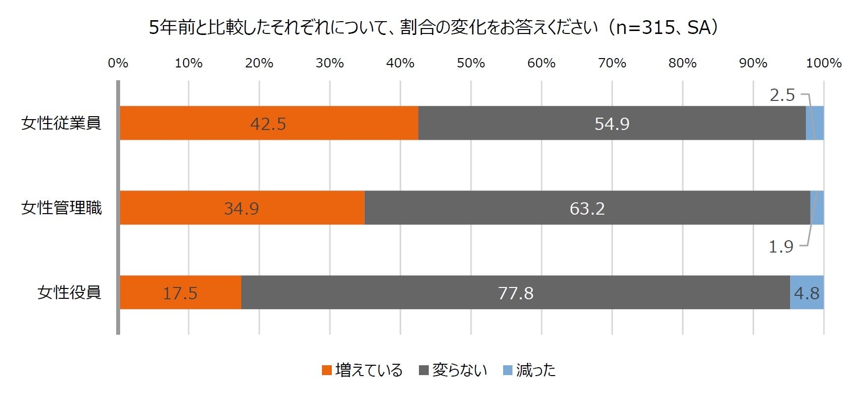 女性活躍を「推進したい」は約9割になるも、女性管理職ゼロは2割、女性役員ゼロは過半数