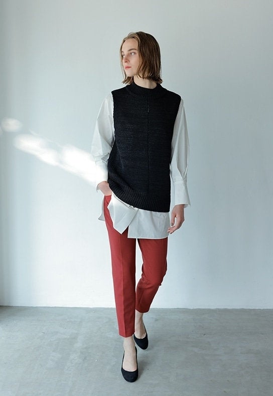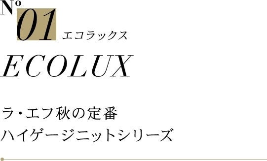 17.5マイクロンという究極に細いウール糸、「スーパーエクストラファインメリノ」をハイゲージで編立てた上質ニット。 2本の糸を撚糸したものが一般的な中、 エコラックスは3本の糸を使用。それにより編地がとてもきれいで、上品な光沢が生まれます。 また、環境にやさしい表面の毛羽のみを取り除く加工を施すことで、糸自体の風合いを損うことなく、手洗いが持続的に可能になりました。