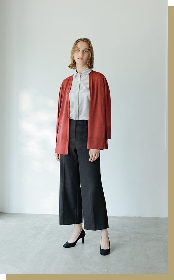 世界三大毛織物産地である尾州で生まれたオリジナル素材を使った、ジャケットとテーパードパンツ、ワイドパンツ。通常より細いストレッチ糸で、マルチウェイに伸びるように設計され、すべらかな履き心地を実現しました。冬に暖かい両面起毛加工にもこだわり、起毛回数を増やし羽毛を限界の短さにカットすることでしなやかで、暖かく、肌になじむしっとりとした肌触りに。