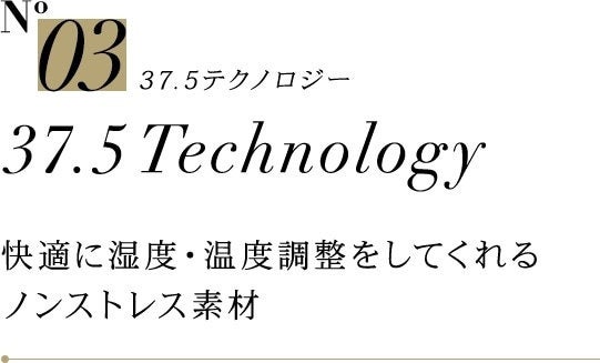 「37.5®テクノロジー」という湿度・温度調整素材を使ったパンツ。暑い時には衣服内の湿気を取り除き、寒い時には暖かさをキープしてサーモスタットの様な役割をします。人の身体を理想的な温度・湿度に保つ機能を繊維に練りこむことで半永久的に持続します。また、体のラインを拾いにくく、マルチに伸びるノンストレスな着心地を追求した素材です。更に今回、ラ・エフオリジナルで世界初の素材を製作しました。