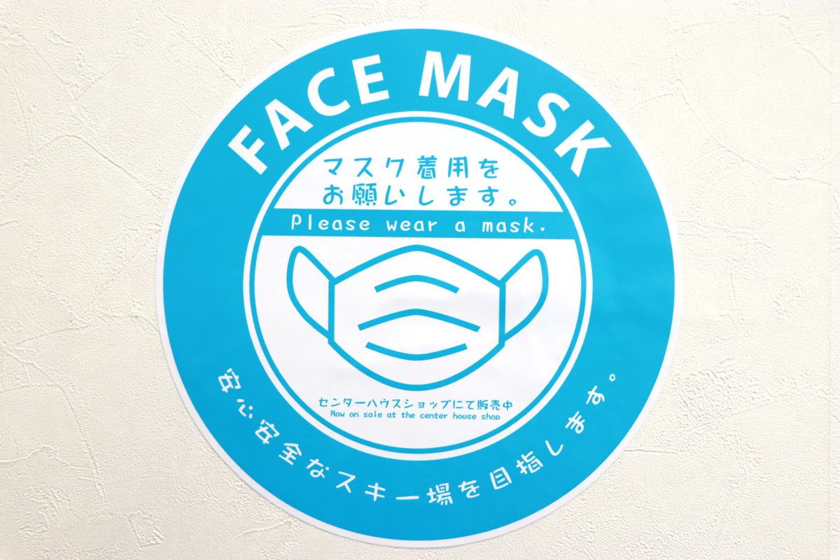 【万全の「新型コロナウイルス対策」を実施!「新しい検温器の導入」や「マスク着用を促す新しいサインシール」を張り付ける等、感染予防及び拡散防止対策を徹底強化、安心安全のスキー場へ。】