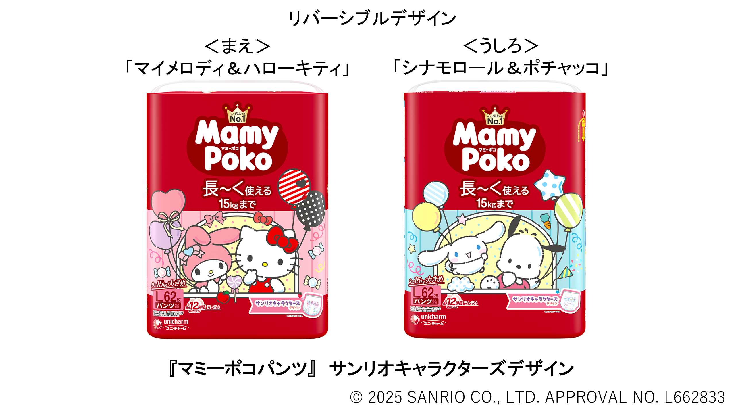 ユニ・チャーム株式会社(代表取締役 社長執行役員:高原 豪久)は、株式会社サンリオの人気のサンリオキャラクター『マイメロディ』、『ハローキティ』、『シナモロール』、『ポチャッコ』をデザインに採用した『マミーポコパンツ』サンリオキャラクターズデザイン企画品を、2025年11月18日に一部企業にて期間限定品として発売します。