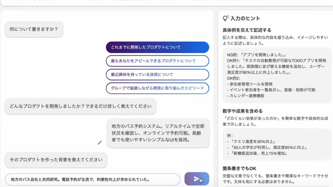AIと対話することで開発実績のアピール文面が3分で完成