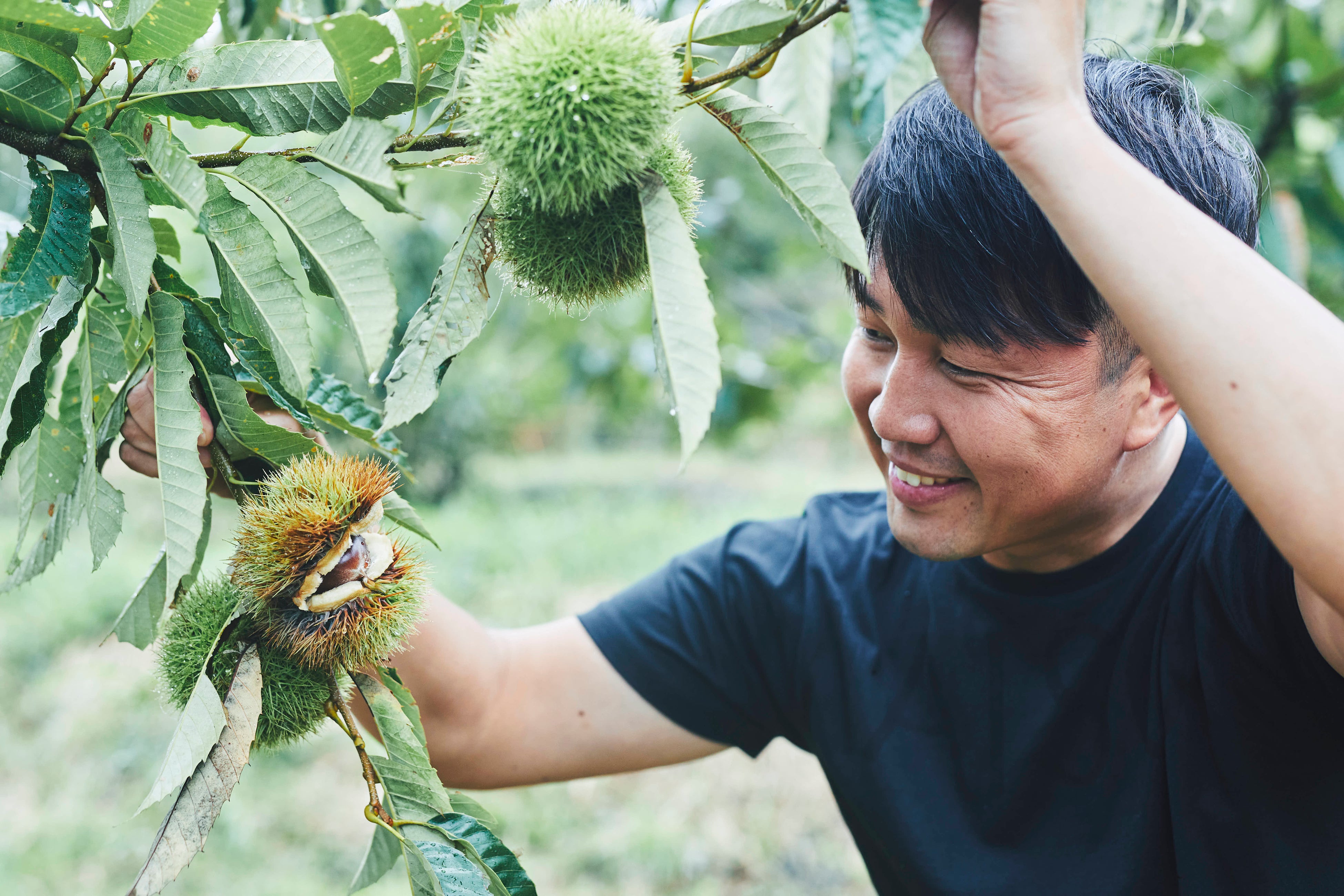 代表の石原が日本各地を旅して出会った生産者の素材へのこだわりを聞き、その美味しさを最大限に引き出すチョコレートを旬の味わいとしてお届けしています。9月は熊本県山鹿市でひときわ手間暇をかけて育てられた市原農園の熟成和栗が登場。