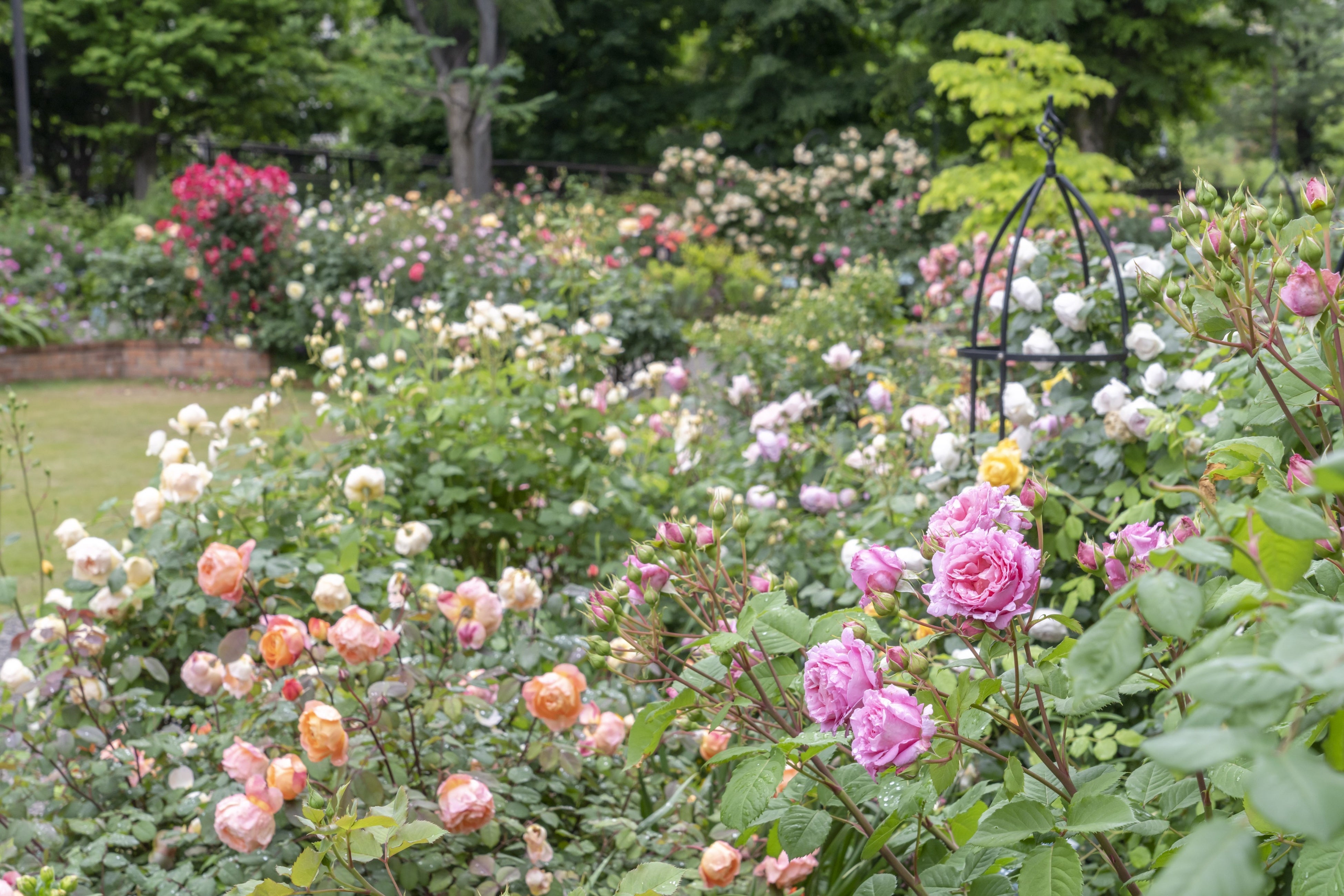 - 色彩のローズガーデンでは当園オリジナルのシンボルローズ「四季の香」が見ごろに