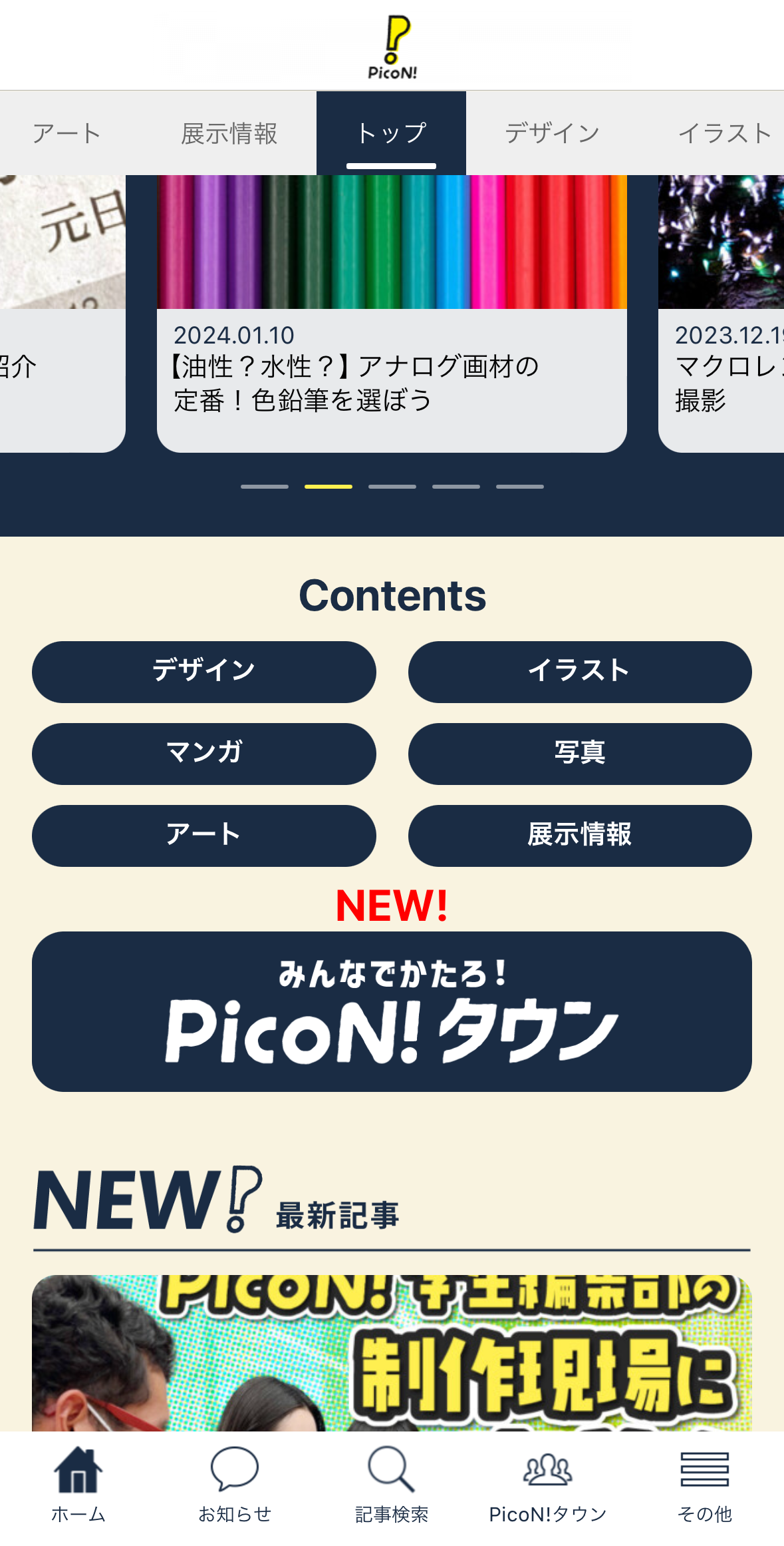 リニューアルに伴い、トップ画面も刷新。あなたの感性を “ピコン!” と刺激する、さらにスタイリッシュでユーザーフレンドリーな仕様に進化しました。