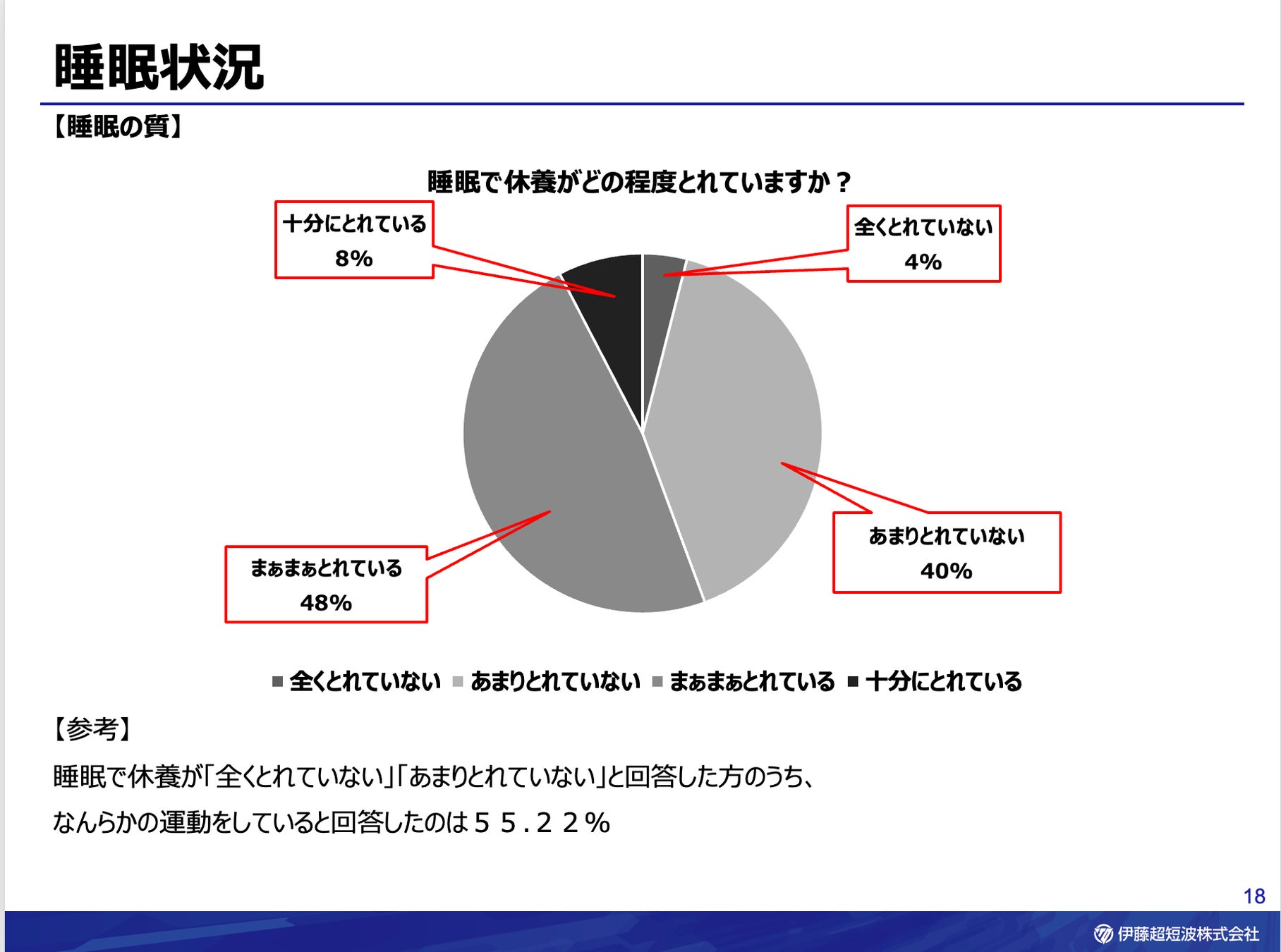 伊藤超短波では、2018年に健康経営の取り組みを開始。取り組み開始以来、従業員の声や健康状態を把握しながらサポート制度をブラッシュアップして従業員の健康維持・増進に努めてまいりました。