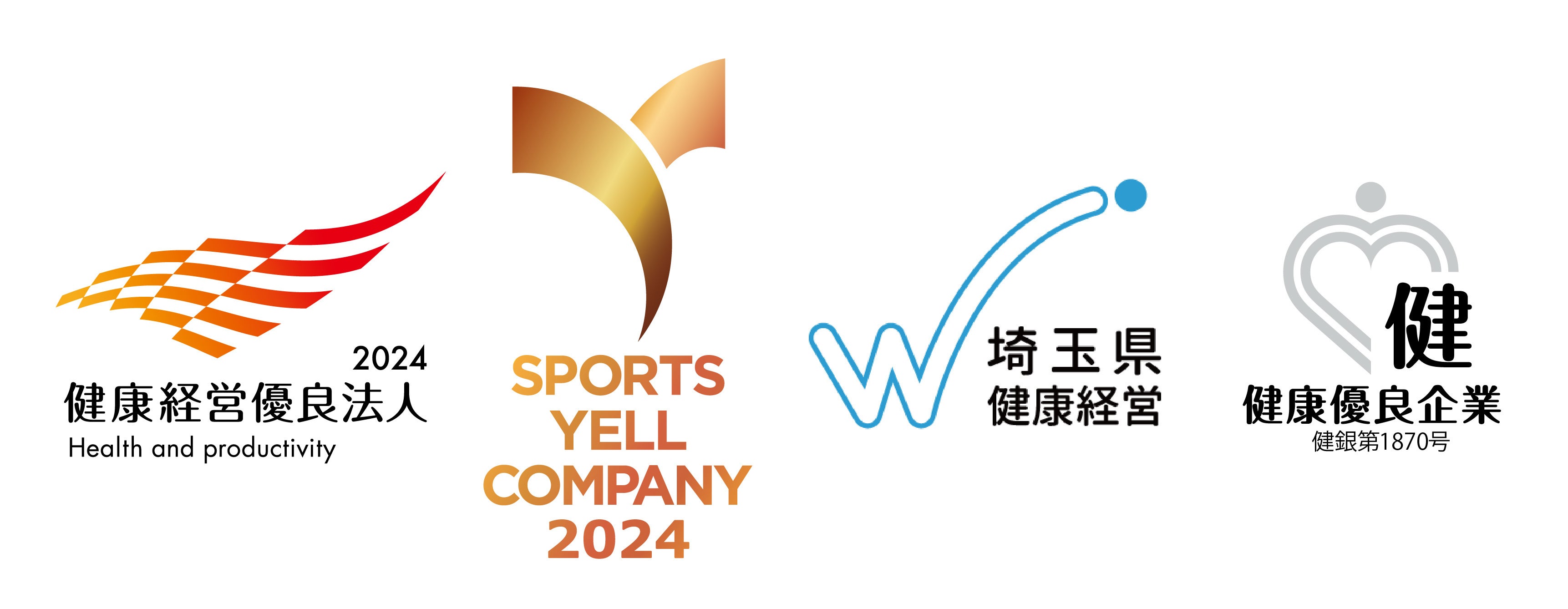 弊社の健康経営への取り組みに対する評価として、経済産業省と日本健康会議が共同で選出する「健康経営優良法人(大規模法人部門)」、スポーツ庁が認定する「スポーツエールカンパニー」、本社所在地である埼玉県が認定する「埼玉県健康経営実践事業所」、および健康保険組合連合会 東京連合会が認定する「健康優良企業「銀の認定」」を取得しています。
