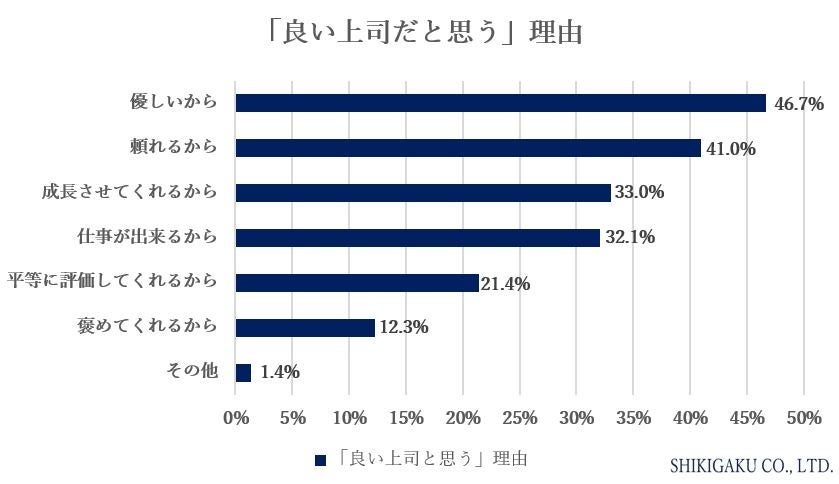 「いい上司」だと思う理由として最も多かったのは「優しいから」で46.7%、次に