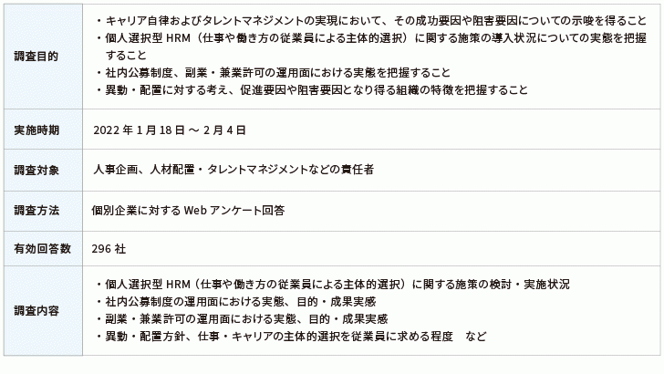 人事への調査からジョブ型時代のキャリア自律とタレントマネジメントを考える-社内キャリアの可能性を広げる施策導入・活用のポイントと社内公募制度、副業・兼業許可の運用実態-