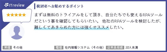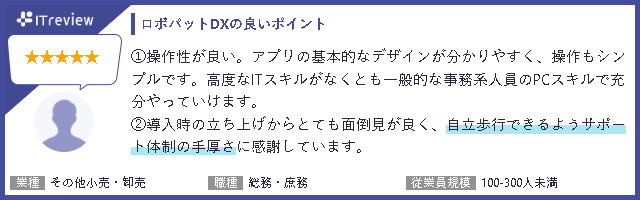 また新設された企業規模別の部門賞である「中堅企業部門」「中小企業部門」においても「Leader」を受賞しており、企業規模を問わず『RPAロボパットDX』を活用いただいての受賞となりました。