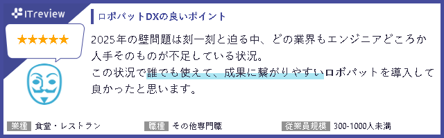 株式会社FCEプロセス&テクノロジー(東京都新宿区、代表取締役社長:永田純一郎)は、アイティクラウド株式会社(以下:アイティクラウド 本社:東京都港区、代表取締役社長:黒野 源太)が主催するアワード「ITreview Grid Award 2022 Spring」において、当社が提供する純国産RPA『RPA Robo-Pat DX(以下、RPAロボパットDX)』が、満足度・認知度ともに優れた製品に贈られる「Leader」を受賞したことをお知らせいたします。